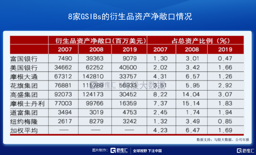 吃一堑长一智,美国银行业衍生品现在的风险敞口较2008年也明显缩小。2019年末,美国8家系统重要性银行的衍生品敞口在总资产中的占比不到1.7%;而2007年的占比为4.23%,2008年的占比为6.47%。