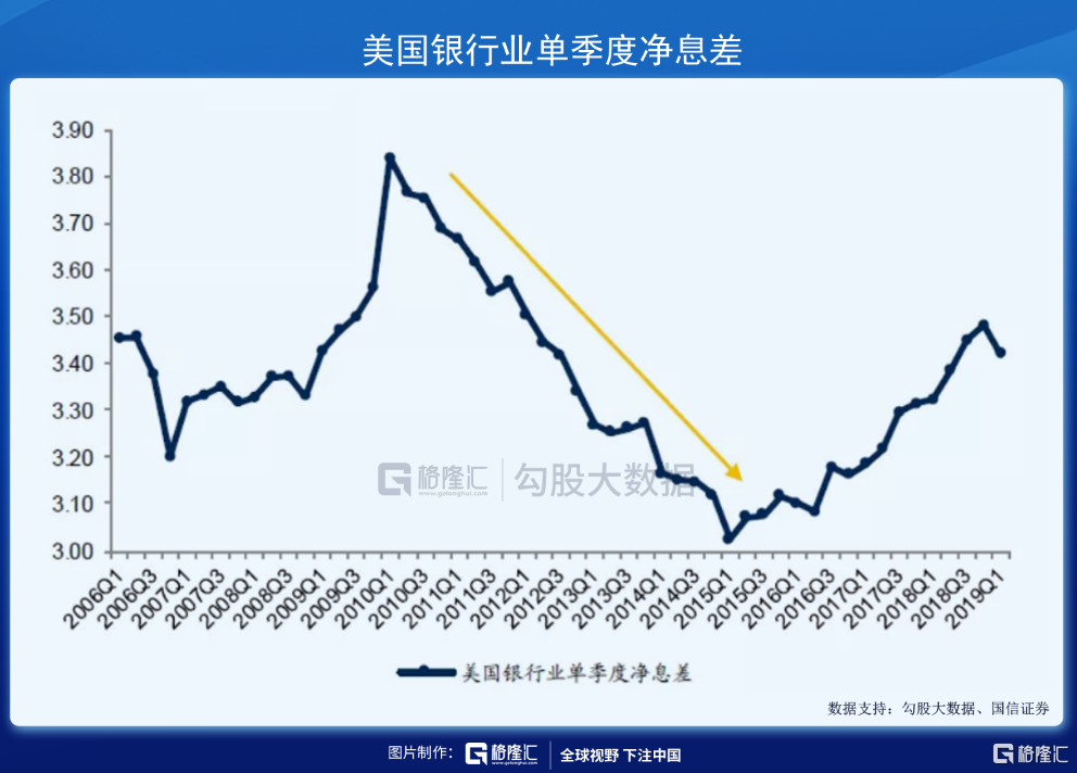 持续的降息使得美国银行业的净息差持续回落,直到2015年一季度才开始反转。