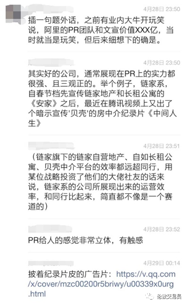 图:仅代表个人观点,不代表作者意见。因为是聊天记录,所以遣词用句上不够严谨,请理解。(这部纪录片的出品方的确也有"贝壳找房")