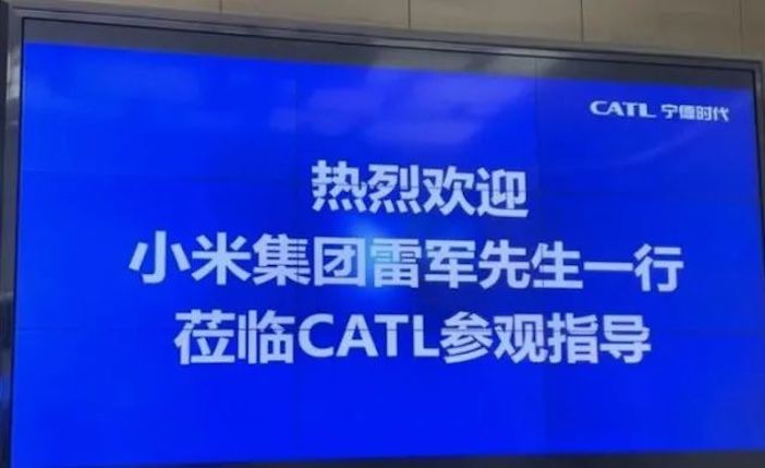 4月25日,据一张网传图片显示,雷军前往宁德时代参观。该图片拍摄了一块显示屏,内容为“热烈欢迎小米集团雷军先生一行莅临CATL参观指导”,画面右上角还有宁德时代Logo。4月28日,有消息称,OPPO正筹备造车,其创始人陈明永会见了宁德时代中国乘用车事业部总裁朱威,双方畅聊数小时。
