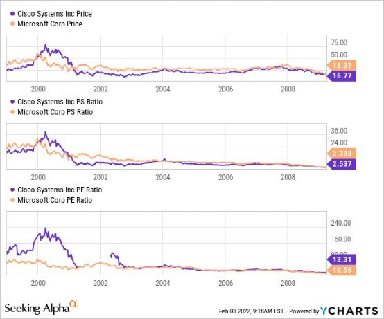 我们没有为一家公司支付16倍销售额的先例,1999年,我们在思科(CSCO)和微软(MSFT)身上尝试过这种实验,十年后这两家公司的价格都降低了。