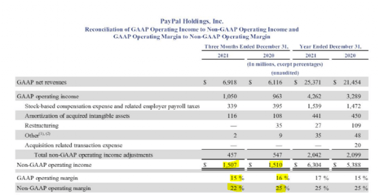 PayPal经营利润率(PayPal 2021年第四季度报告)