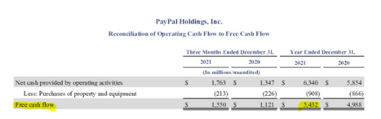 PayPal自由现金流(PayPal Q4-2021 Presentation )