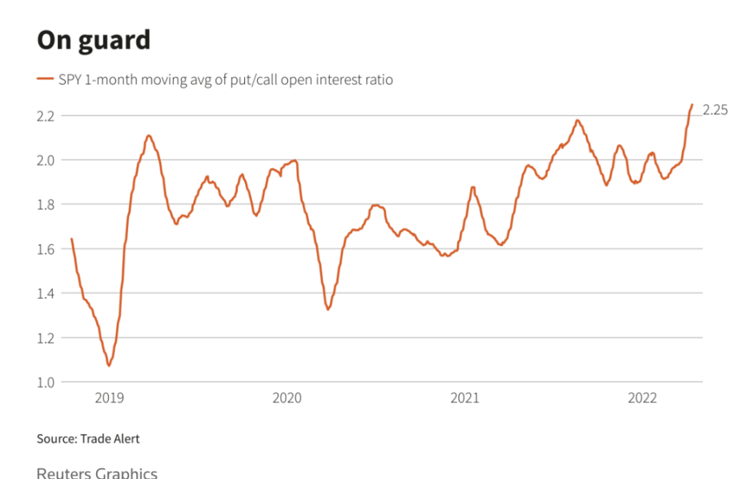 根据TradeAlert的数据,SPDRS&P500Pacer Swan SOS Fund of Funds ETF|ETFTrust未平仓看跌合约与未平仓看涨合约比率的一个月移动平均值为2.25,已经是过去四年来的最高水平。