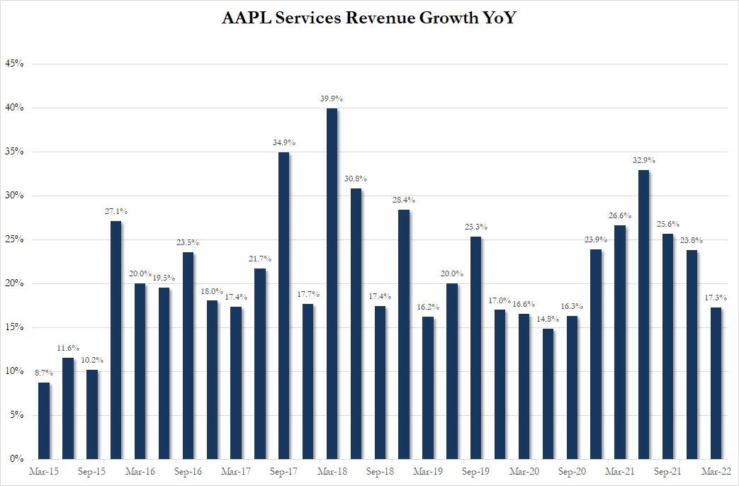一季度服务收入同比增长17.3%,增速为2020年三季度以来最低,不过略高于分析师预期增速17%,去年四季度增长24%。