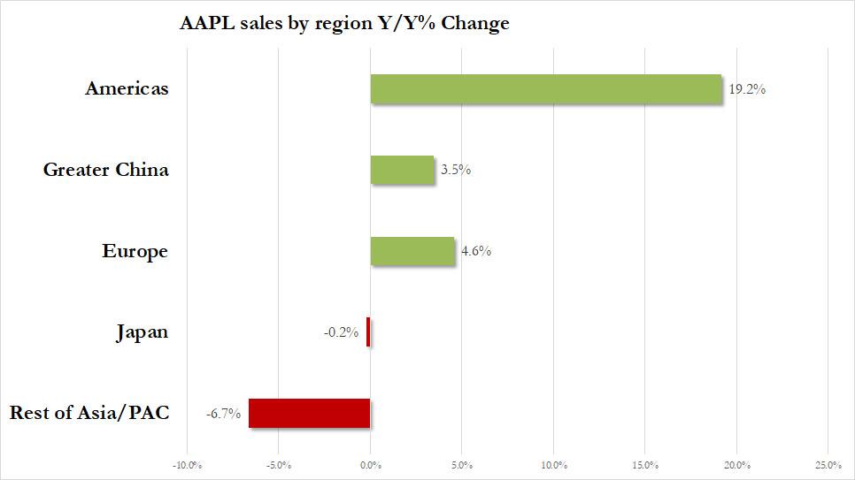 一季度苹果在不同地区表现不一,相比前一季度,在美洲市场收入增长更强劲,在日本收入下滑明显缓和,在中国和欧洲的收入增长明显放缓,在印度等中日以外亚太地区收入由增转降。各地区中,只有美洲的收入增长超过总收入增速,体现了美国本土的突出业绩表现。