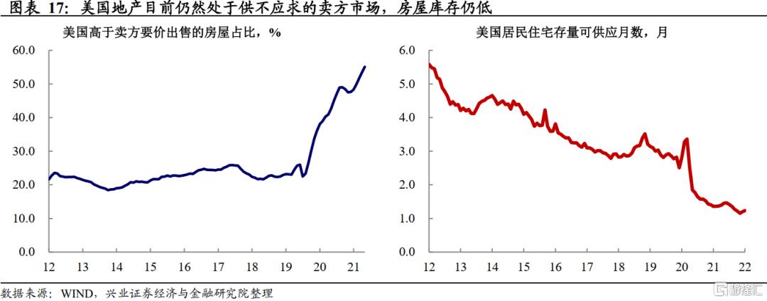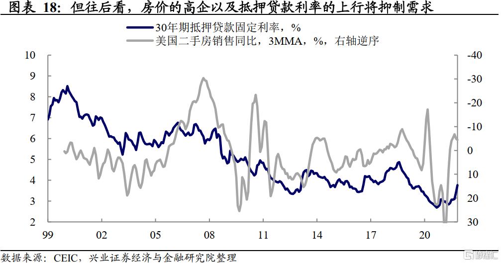 地产仍处于供不应求的卖方市场,但关注利率上行对需求的影响。地产方面来看,目前的销售制约可能还在供给端,天气、木材以及劳动力短缺限制了建筑活动,导致房屋库存持续处在低位,呈现供不应求的局面,进而导致房价高企。但值得注意的是,本轮美国地产需求的修复力——居家办公以及低利率,都正在遭遇逆风,叠加高房价,这意味着,需求端未来也将降温。