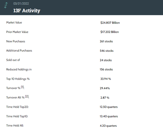美东时间5月13日周五,截止2021年3月31日的第一季度的13F陆续出炉,作为由管理着至少1亿美元的股权资产机构向美国证券交易委员会SEC披露其机构持有的股权及资金去向的重要文件,投资者通常把13F作为自己的“投资风向标”。