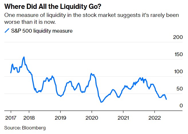 这也正如彭博分析师Cameron Crise在上周所指出的那样,在目前环境下,如今股市的流动性是金融危机和疫情爆发以来最糟糕的。