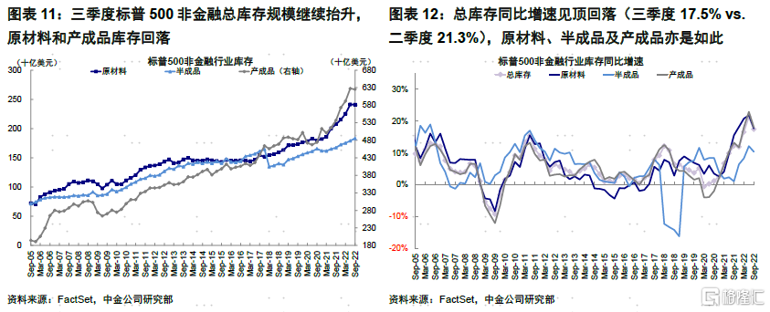 微观角度,一些行业去库压力较大,部分电商及零售企业延长促销季应对。截至三季度,标普500非金融库存整体继续抬升,但原材料及产成品库存开始回落。行业层面,半导体、零售、耐用消费品与服装等库存明显高于历史平均。这一背景下,一些企业也采取行动应对,如电商龙头亚马逊以往每年举行一次会员日(Prime Day),但今年10月首次增加会员抢先体验特卖(Prime Early Access Sale);零售龙头塔吉特于今年10月初即开启“黑五”(Black Friday)特卖季,比去年提前3周;半导体龙头美光本周表示因电子产品需求疲弱,最新一季度库存达到84亿美元历史高位,因此削减新工厂和设备预算,并放慢先进制造技术的引进。