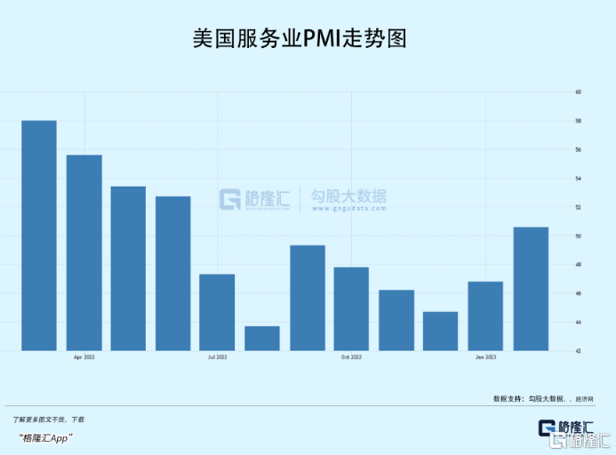 3月3日,Markit服务业PMI终值披露,结果升至50.6,高于预期的50.5,创下2022年6月份以来新高,并逆转之前连续7个月萎缩的趋势。其中,就业分项指数终值升至51.5,创2022年9月份以来终值新高。而2月21日披露的服务业PMI初值为50.5,远超预期的47.5,前值46.8。