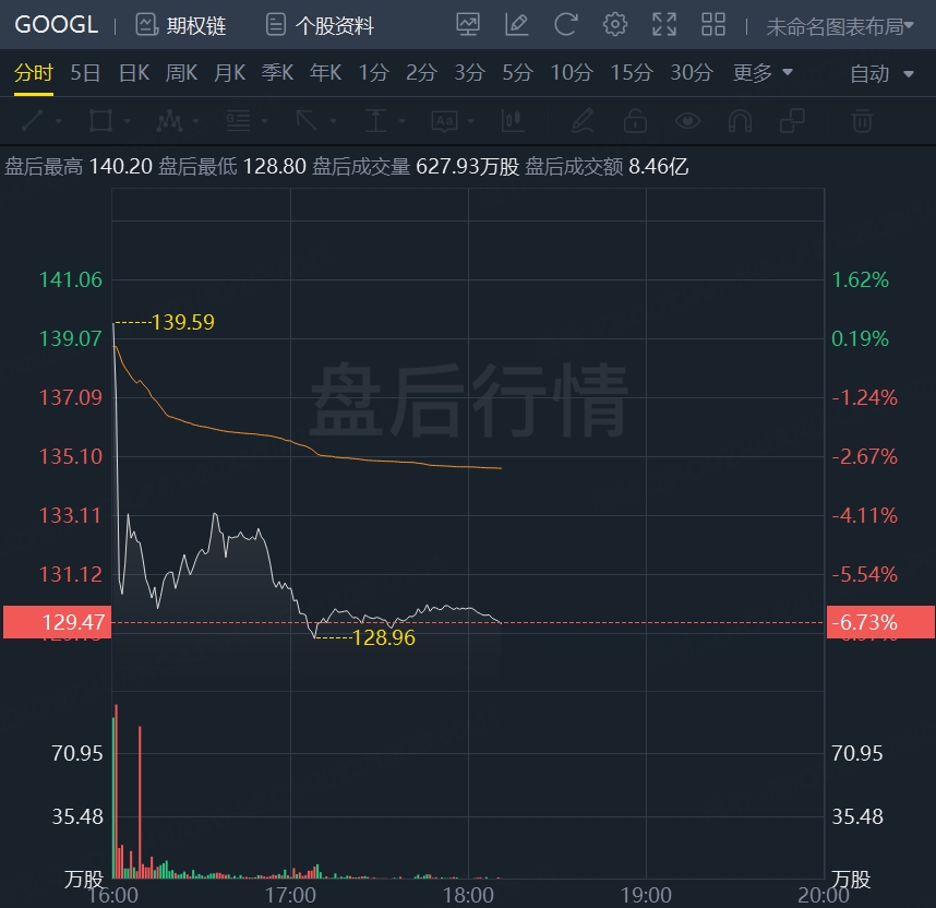 三季度不含流量获取成本营收年640.5亿美元。 谷歌A美股盘后跌5.9%