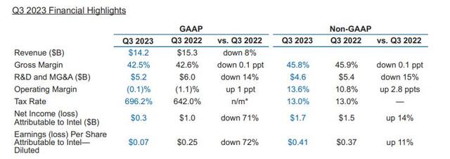 10月26日周四美股盘后,在个人电脑CPU市场占据传统主导地位的芯片巨头英特尔发布了2023年第三季度财报。