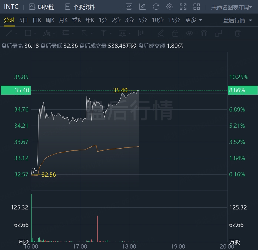 由于三季度营收、盈利和四季度指引均超预期,英特尔盘后一度涨近9%。