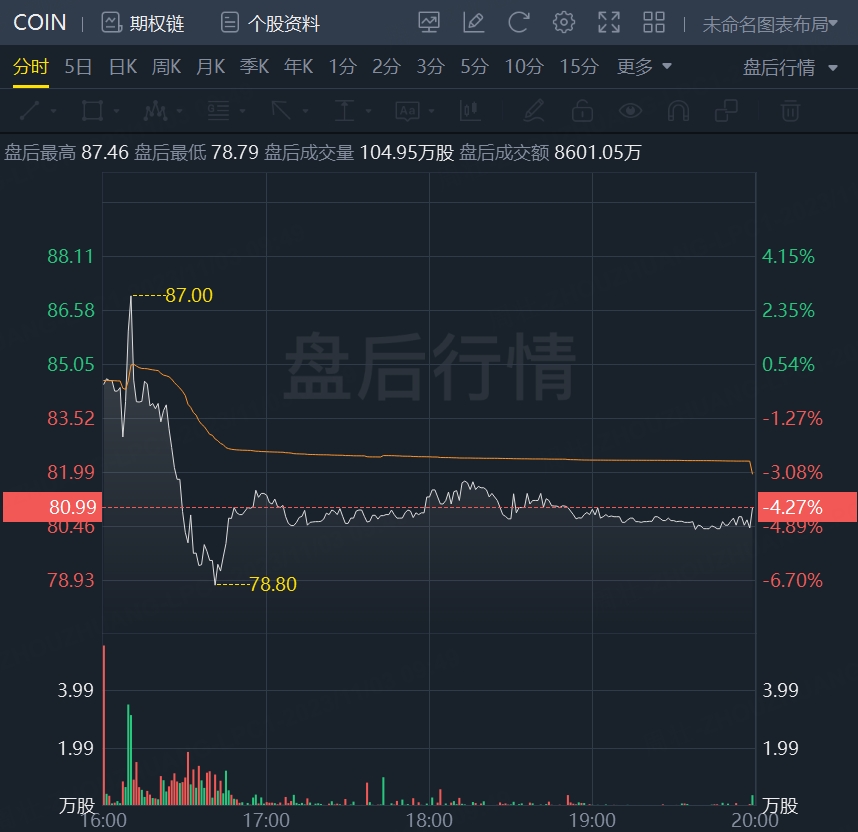 财报发布后,Coinbase盘后股价先涨后跌,随后收跌逾4%。