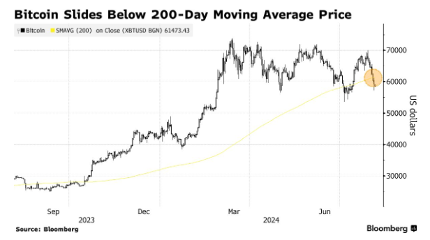 8月2日,美国比特币ETF遭遇了约三个月来最大规模的资金外流。数字资产也跌破了200天移动平均价格。