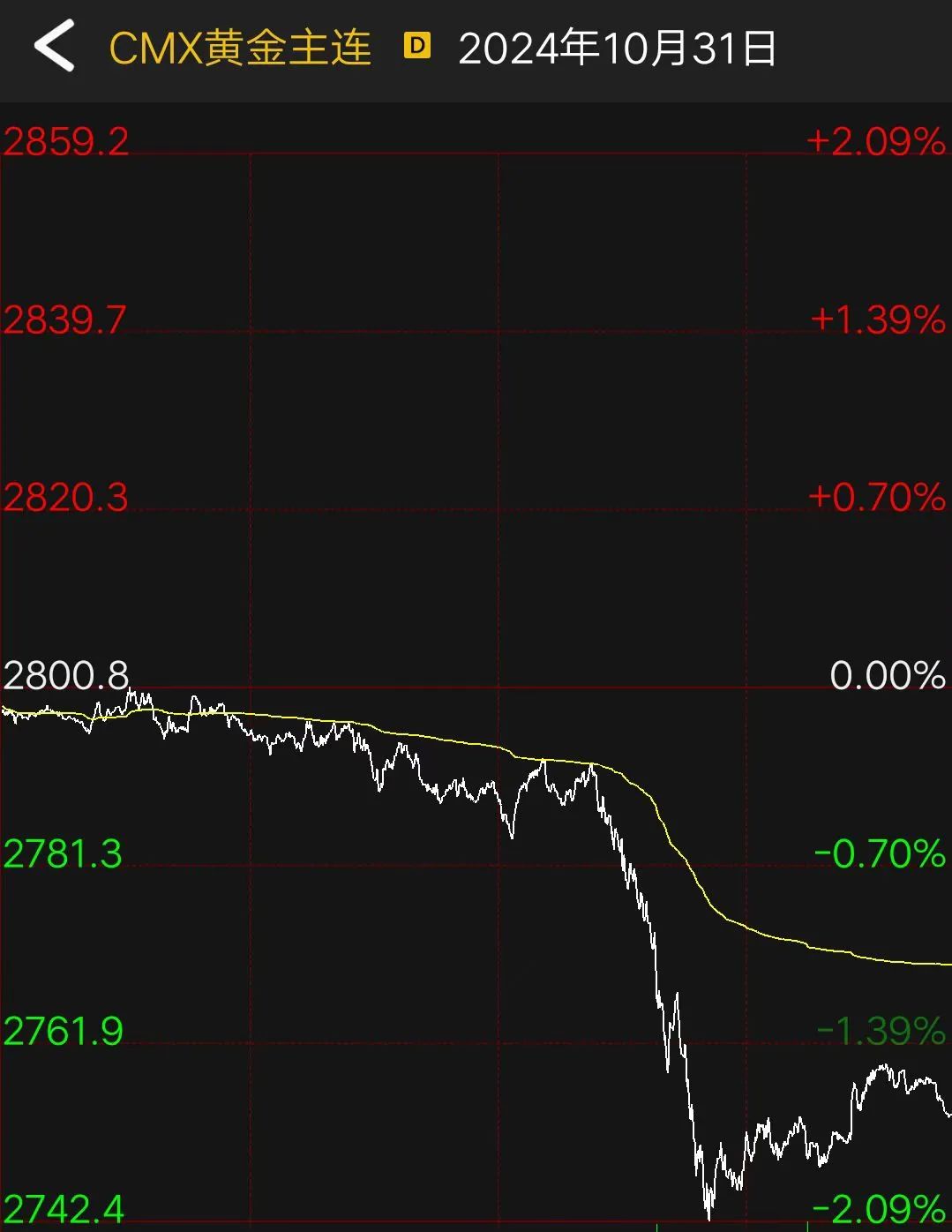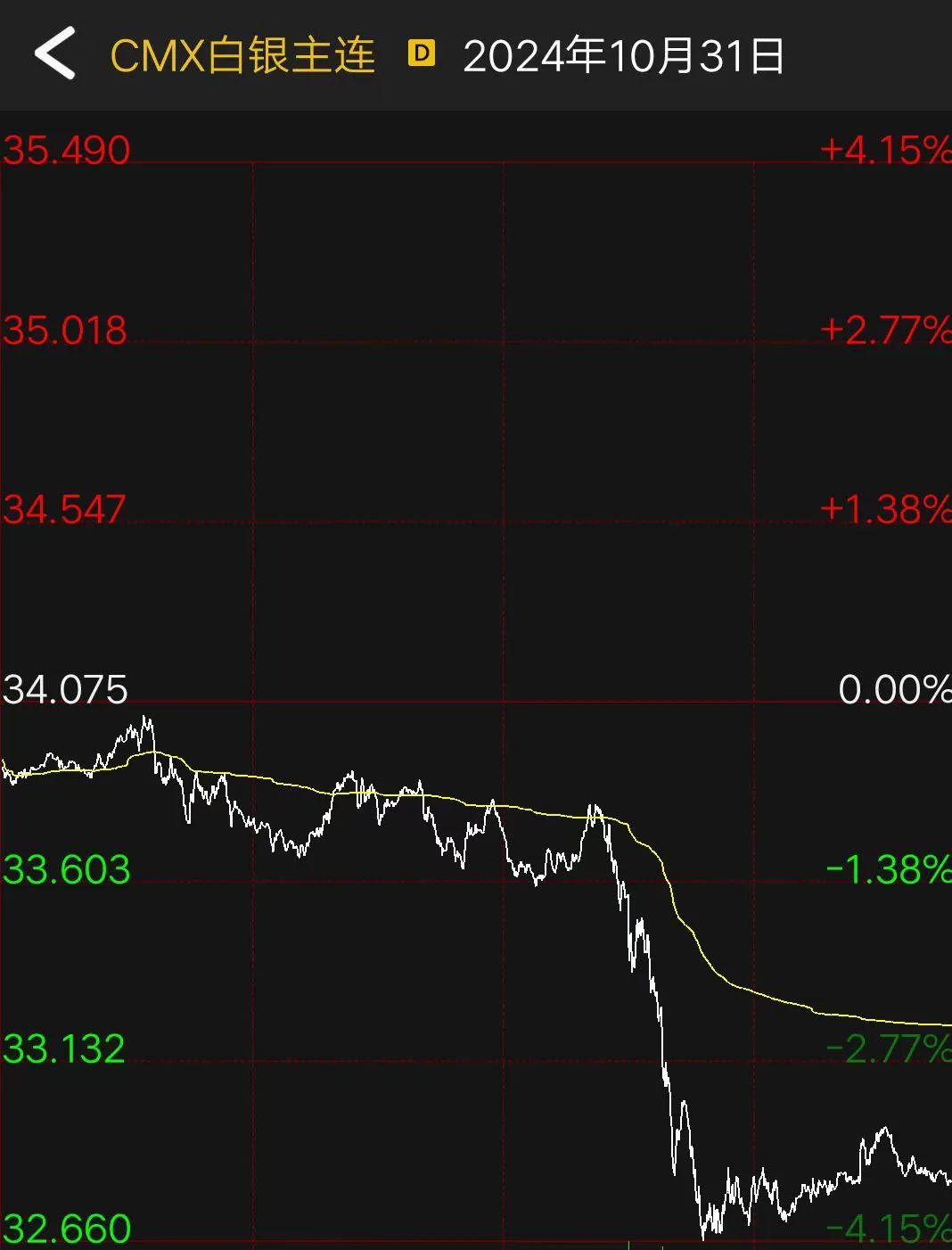 外盘方面,COMEX黄金期货12月合约收跌1.84%,报2749.3美元/盎司;COMEX白银期货12月合约收跌3.75%,报32.796美元/盎司。