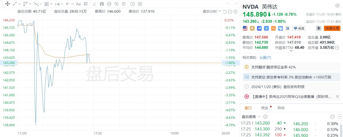 格隆汇11月21日|英伟达美股盘后一度跌近5%。公司三季度营收351亿美元,分析师预期332.5亿美元,三季度数据中心收入308亿美元,预期291.4亿美元。公司预计第四季营收在375亿美元上下2%,市场预估为371亿美元。 海量资讯、精准解读,尽在新浪财经APP