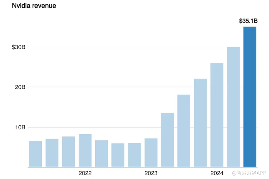 由于市场对先进人工智能芯片的需求强劲,英伟达的增长率仍然惊人,但与前几个季度相比,营收增速明显放缓,当时英伟达的销售额大多翻倍增长。