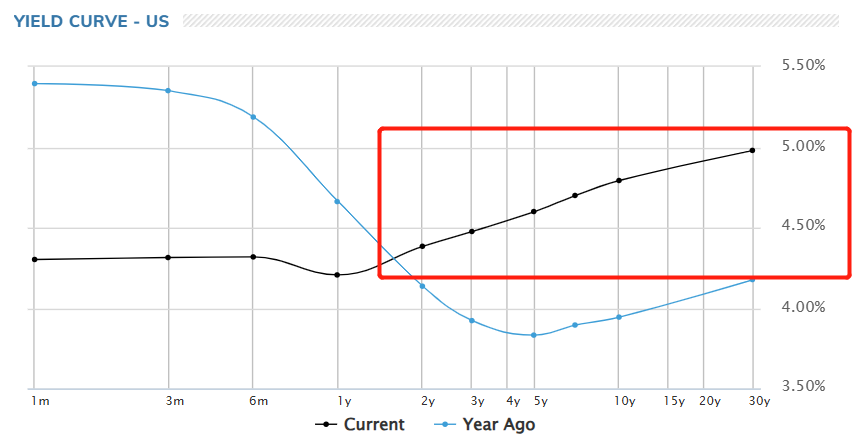 自2022年初以来屡次霸榜金融市场头条新闻的2/5年期、2/10年期以及2/30年期美债收益率倒挂则在2024年结束,随着“特朗普2.0时代”于2025年开启,庞大债息规模以及特朗普2.0时代“MAGA财政框架下”的举债规模可能愈发庞大,美债收益率曲线或将愈发陡峭。