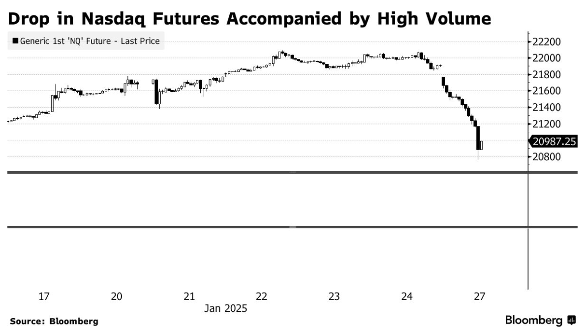 DeepSeek 最新发布的人工智能模型在上周末迅速登顶苹果应用商店排行榜,向OpenAI等成本更高的模型发起了明显挑战,同时也引发了人们对Meta、微软公司和Alphabet Inc.等科技巨头数千亿美元人工智能投资计划的质疑。英伟达的股价在过去两年中飙升了九倍,但此次却暴跌了17%。