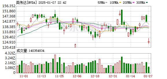 道指跌0.9%,纳指跌3.61%,标普500指数跌2.22%。芯片股重挫,英伟达跌超12%,博通、台积电跌超11%。消息面上,DeepSeek的成功引发芯片股估值担忧。大型科技股普跌,微软跌超4%,亚马逊、谷歌跌逾3%。热门中概股涨跌不一,金山云涨超10%,百度集团涨逾2%,陆控跌超12%,老虎证券跌逾2%。