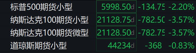 纳指期货跌超3%,标普500指数期货跌超2%,道指期货跌0.83%。