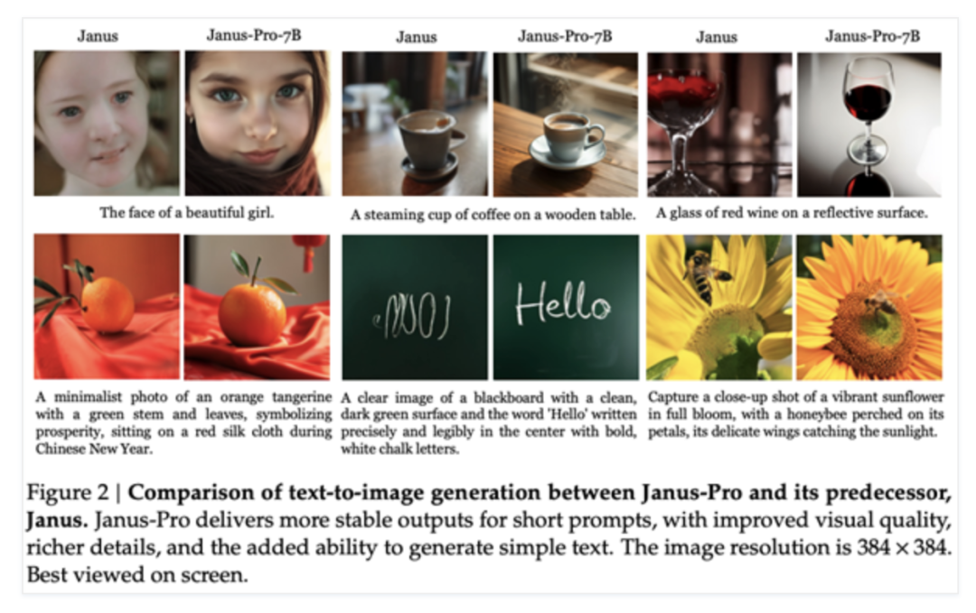 DeepSeek方面表示,该款大模型是2024年11月13日发布的JanusFlow大模型的高级版本。相比前一代模型,Janus-Pro优化了训练策略、扩展了训练数据,模型也更大。通过这些改进,Janus-Pro 在多模态理解和文本到图像的指令跟踪功能方面都取得了重大进步,同时还增强了文本到图像生成的稳定性。