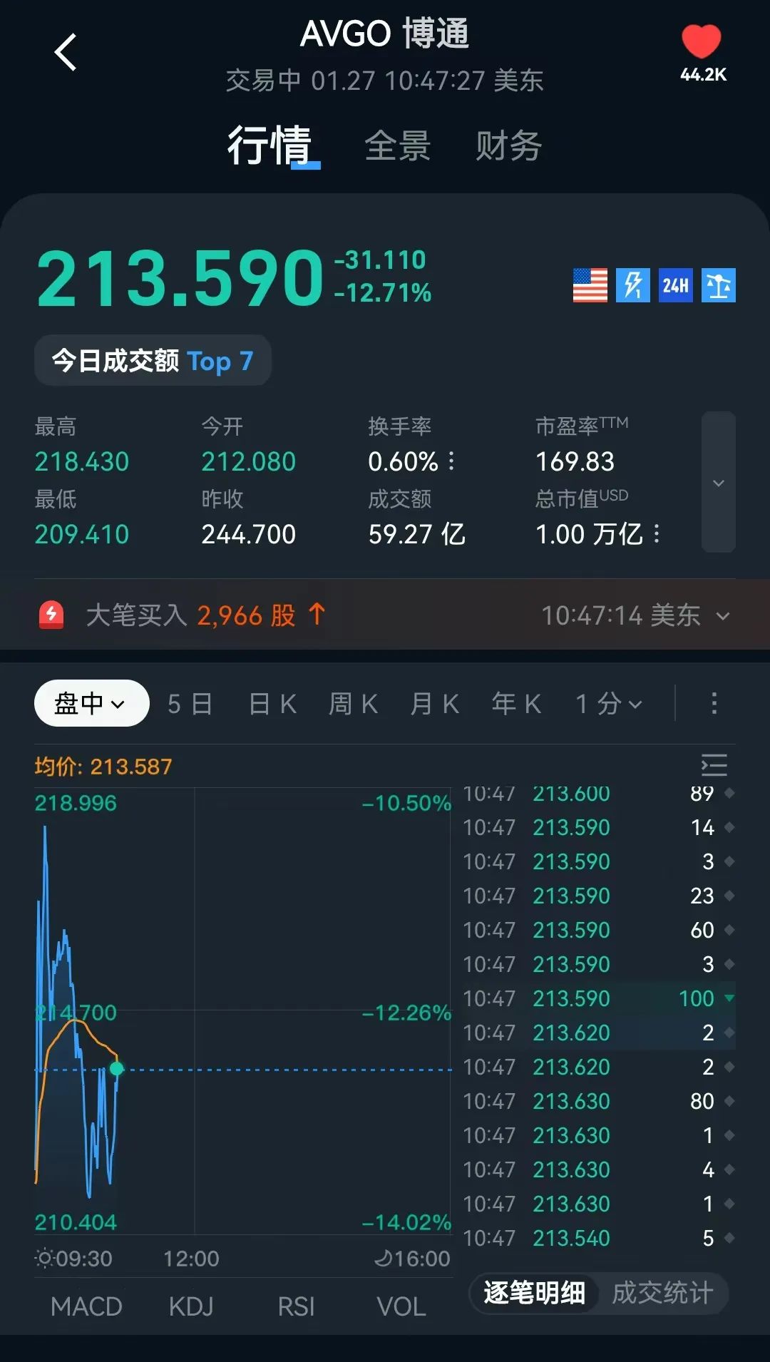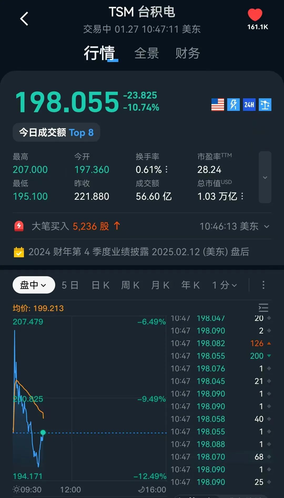 27日开盘后,美股半导体股持续下挫,博通跌超12%,台积电、ARM跌逾10%,美光科技跌逾7%,阿斯麦跌近7%。