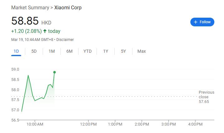 摩根大通认为小米基本面依然强劲,但股价已充分反映市场对电动车业务加速增长、智能手机和IoT份额提升以及智能眼镜、机器人和AI等新业务的乐观预期。3月19日小米港股低开上行,截至发稿升至58.85港元。