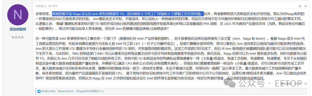 美国科技媒体semiwiki表示,对于此次任命表示不理解。认为凯莱赫是被排挤走的,而不是自愿离职。同时对印度裔高管纳维德·沙赫里亚里表示不满, 认为其有 0 个代工厂经验和 0 个逻辑工艺开发经验,不足以能够承担其英特尔的代工业务。