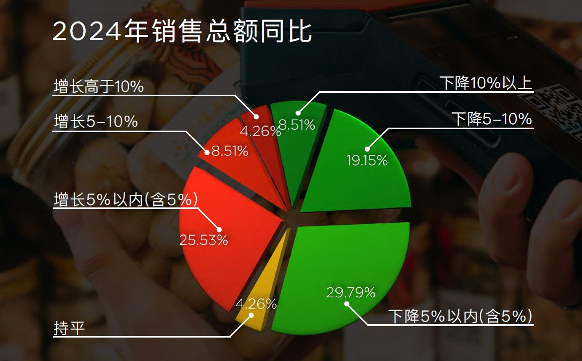 几乎就在美团闪电仓爆发式增长的同时,线下商超的经营开始出现恶化。根据中国连锁经营协会对47家超市企业的1万多家门店在2024年的经营情况摸底调查,只有38.2%的超市企业零售总额同比实现增长,其中大多数门店并无增加,相对应有57.4%的超市企业销售出现下降。“从统计结果看,2024年连锁超市行业面临较大的发展压力。除来客数外,其他关键指标实现同比增长的企业占比不到半数,向好的趋势不明显。”据壹览商业不完全统计,2024年国内至少有1.2万家门店宣布关闭。
