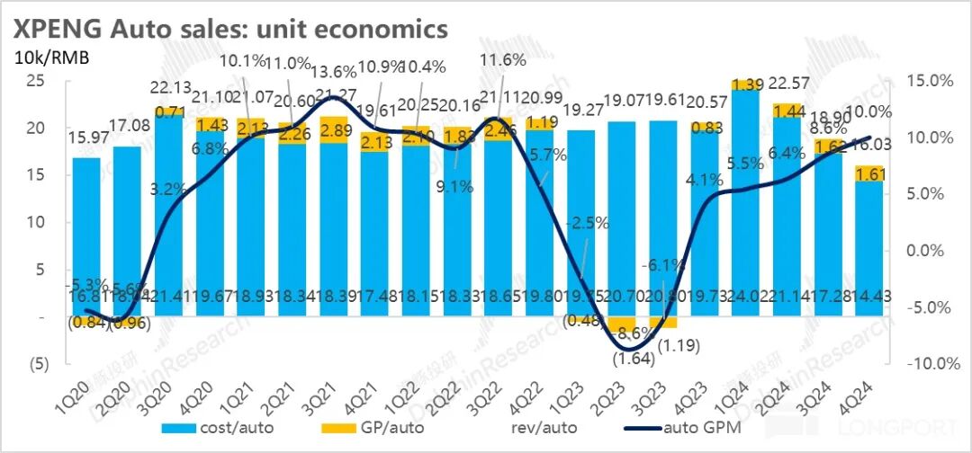 整体来看,在小鹏四季度爆销情况下,虽然单车收入不及预期,但在汽车毛利率仍然站上了双位数 10% 的情况下,背后反应的是小鹏的降本能力的大幅提升,这样的四季度业绩本身并不会被市场所苛责。