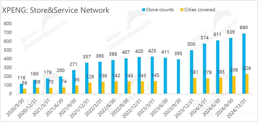 而四季度,小鹏的销售网络继续扩张,截至四季度末,小鹏共有 690 家门店,相比四季度门店数继续高 541 家,而覆盖城市也在继续下沉(主要通过扩展经销网络来快速扩张下沉市场,支撑小鹏的车型下沉:如低价小车 Mona),四季度新扩张了 20 个城市,所以只要车型能继续维持爆销趋势,高销售和行政费用市场也不会过分苛责。