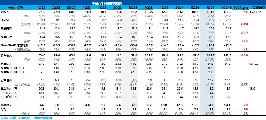 四季度小鹏实现总收入 161 亿,略低于市场预期 167 亿,主要还是因为卖车单价低于预期,导致卖车收入不及预期。