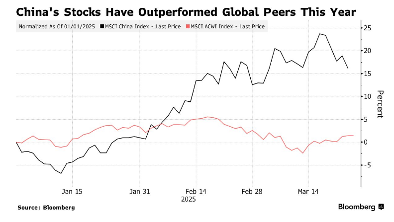 MSCI中国指数年初至今已上涨16%,而全球股指仅微涨约1%。科技股表现尤为突出,这得益于DeepSeek所展现的人工智能潜力,以及政府对科技行业领导层更积极的姿态。