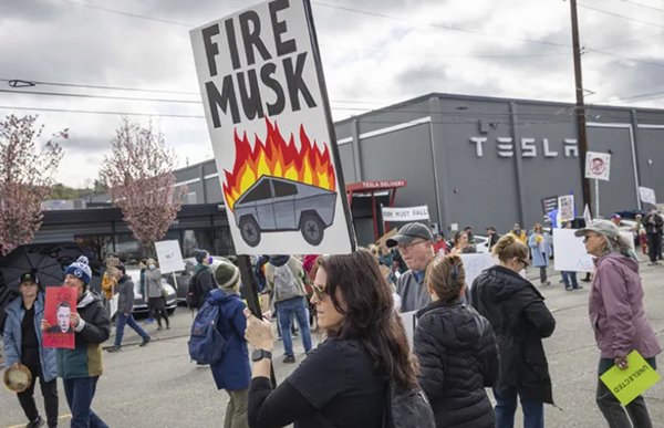 全美多地爆发针对特斯拉及其首席执行官马斯克的抗议活动。 《西雅图时报》