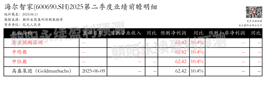 截至2025年06月11日,根据朝阳永续季度业绩前瞻数据: