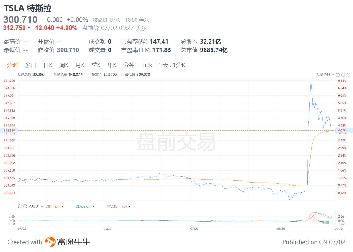 注:第二季度交付数据公布后,特斯拉直线拉升一度涨7%。