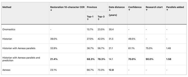 一位参与测试的历史学家感叹道:“Aeneas 检索到的平行文本彻底改变了我对(目标)铭文的看法。如果没有它,我可能要花好几天时间才能找到这些材料,而现在只需要 15 分钟。这让我可以把更多时间用于撰写和构建研究问题,而不是在寻找资料上。”