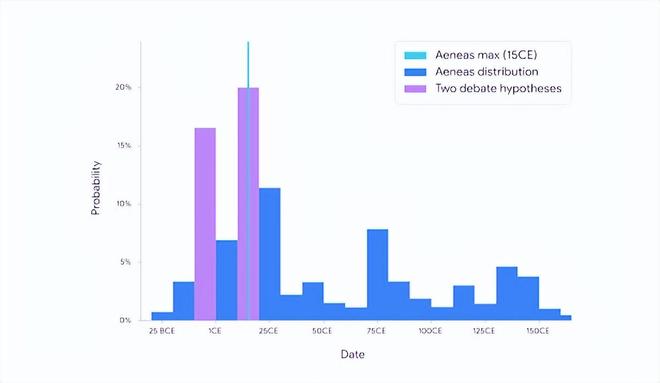 研究团队还用两个代表性案例来展示 Aeneas 的强大能力。其中一个是罗马帝国第一位皇帝奥古斯都的“神圣奥古斯都事迹录”(Res Gestae Divi Augusti)。关于这篇长篇铭文的确切撰写时间,学术界一直存在争论。Aeneas 在分析了全文后,给出了两个可能的年代高峰,一个在公元前 10-1 年,另一个则在公元 10-20 年。这恰好与学术界两种主流假说高度吻合,证明 Aeneas 能够以量化的方式捕捉并呈现复杂的历史学辩论。