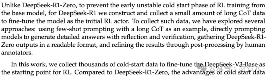 在DeepSeek-R1训练中,研究人员直接提示模型生成包含反思和验证的详细答案;收集并整理DeepSeek-R1-Zero的输出,使其具有可读性;以及通过人工注释者的后期处理来提高数据质量