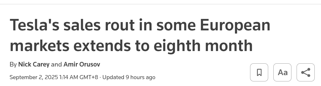 外媒:特斯拉面临中国车企激烈竞争 在欧洲多个市场销量持续下滑