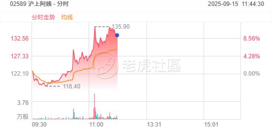9月15日(周一),沪上阿姨早盘涨超9%,截至发稿,涨9.34%,报133.6港元,成交额5940万港元。
