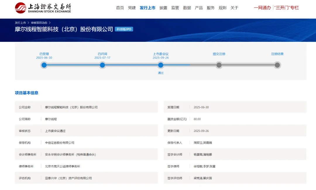 9月26日,国产GPU创业公司摩尔线程通过上交所审核,迈过冲刺科创板上市的关键一步,继续冲刺“国产GPU第一股”。