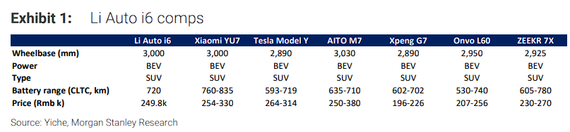 大摩称,从竞品对比来看,i6在同价位区间面临激烈竞争。