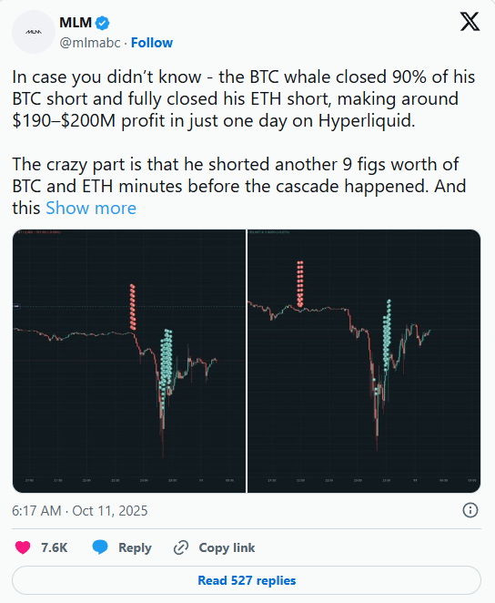 “这还只是在Hyperliquid上公开的,想象一下他在中心化交易所(CEX)或其他地方做了什么。我非常确定这家伙在今天发生的事情中扮演了重要角色。”