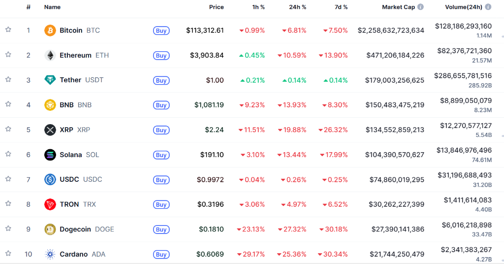 美国东部时间10月10日,受特朗普关税威胁影响,加密货币市场大幅下跌。