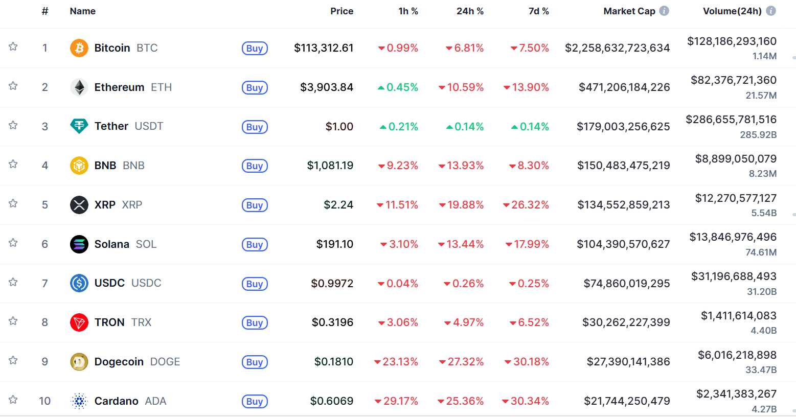周五,比特币日内跌幅达13.5%,失守11万美元关口,最低报105930美元,随后跌幅大幅收窄;比特币本周一曾创下逾12.625万美元的历史新高。以太币一度暴跌逾17%,瑞波币和狗狗币则更是暴跌逾30%。加密货币的抛售潮是自至少今年4月初以来规模最大的一次。