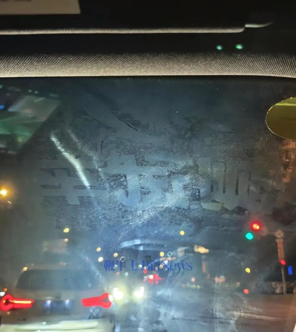 9月5日晚,等红灯时发现车辆前挡风玻璃上显现出“测试车”三个大字的印子。当晚,小米售后联系了他,只表示是汽车抽检。